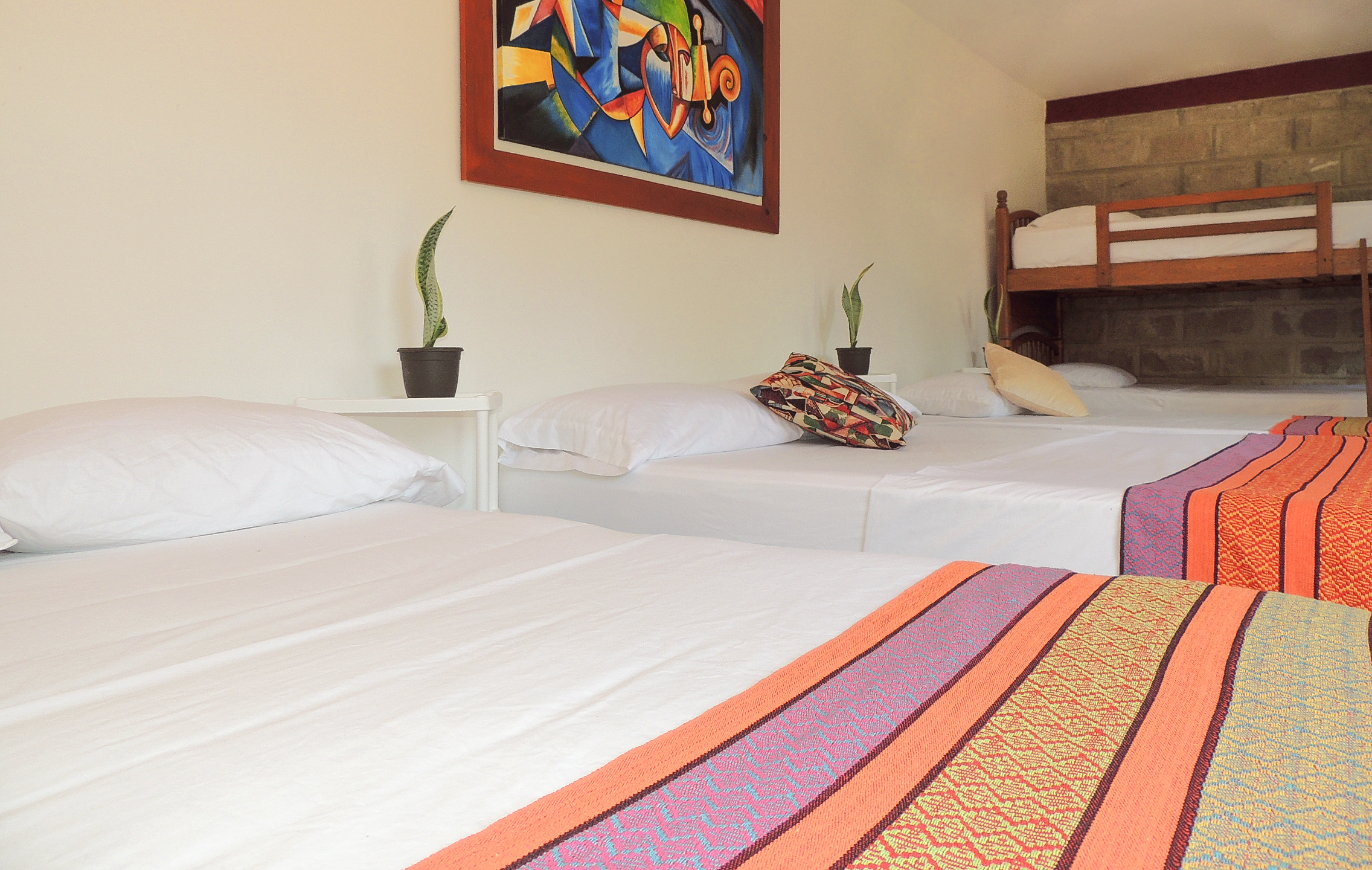 Seven – bedroom 2 double beds, 1 single bed, 1 bunk bed, private bathroom, cleaning and toiletries, typical Caribbean breakfast and Wifi.